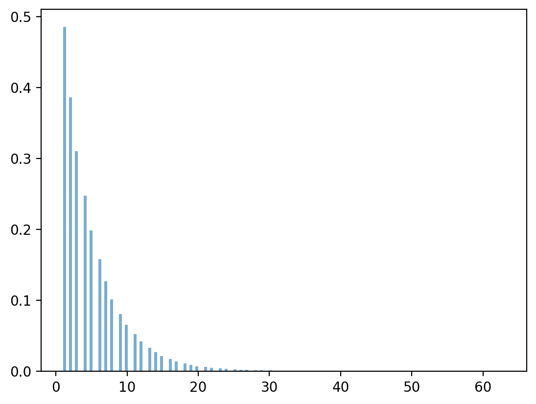 We can verify that \(x\) is indeed geometrically distributed by the following numpy program.